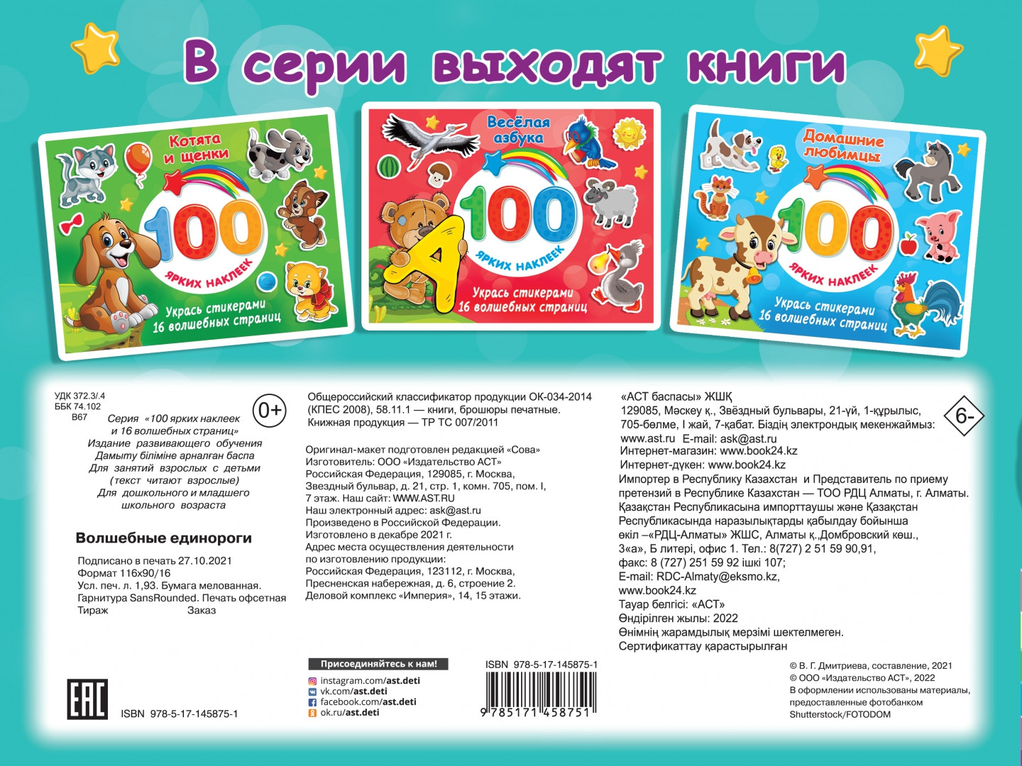 Серия: 100 ярких наклеек и 16 волшебных страниц «Волшебные единороги» — это красочная книжка с наклейками для малышей. Ребята совершат путешествие в волшебное королевство, где подружатся с удивительными сказочными существами — единорогами. Увлекательные задания и игры с наклейками позволят ребятам потренировать мелкую моторику, развить зрительное восприятие и внимательность. |