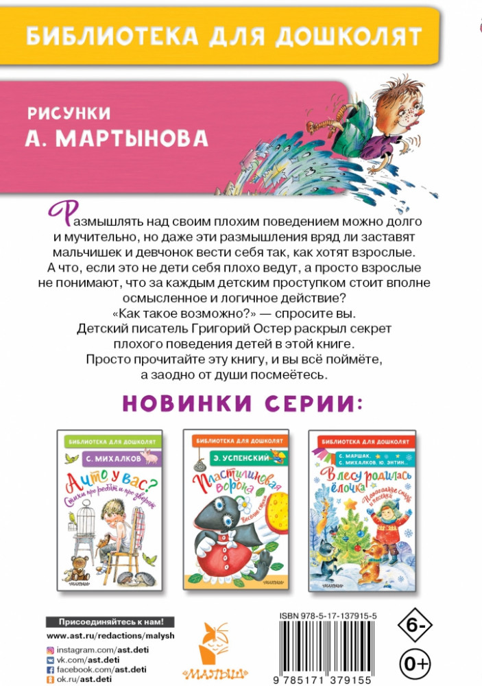 Я конечно люблю Георгия Остера, но рекомендовать эту книжку в "Библиотеку для дошколят" не стала бы! Все же этот юмор для ребят побольше, а то и взрослых .. Но все равно спасибо издательству Малыш" и магазину Флип за прекрасную книжку!