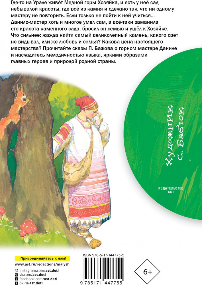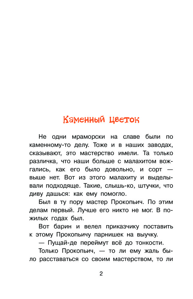 Каменный цветокВ данный момент этот товар отсутствует в продаже. Возможно, у нас найдется аналогичный или похожий товар здесь. Серия: Библиотека начальной школы В книгу «Каменный цветок» вошли два сказа Павла Петровича Бажова: «Каменный цветок» и «Горный мастер». Эти сказы помогут задуматься о своём призвании в жизни, о цене истинного мастерства, о любви и самоотверженности. Сказы П. Бажова позволяют окунуться в мир волшебства и первозданной природы, оценить красоту родного языка и восхититься смелостью и отвагой людей. Эти произведения входят в школьную программу. |
