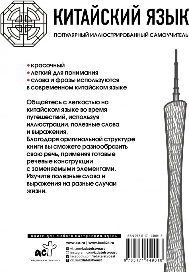 💳 Оплатить за товар можно при получении 🇰🇿 Есть бесплатная доставка по Казахстану от 1 дня 🎁 Копите бонусы с каждой покупки Серия: Популярный иллюстрированный самоучитель Яркий иллюстрированный самоучитель китайского языка — настоящая находка для тех, кто изучает китайский язык и собирается познакомиться поближе с культурой Китая. В книге собраны самые распространенные выражения и слова, которые помогут научиться говорить по-китайски на повседневные темы. Все слова и выражения, представленные в книге, сопровождаются не только красочными иллюстрациями, но и транскрипцией пиньинь. |