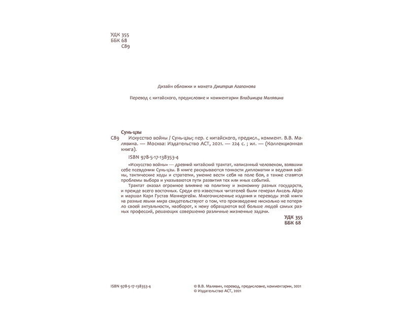 Серия: Коллекционная книга Настоящая книга — известный древнекитайский трактат, посвященный военной политике. До сих пор никому еще не удалось сформулировать принципы ведения войны так же просто и афористично, как человеку, известному под псевдонимом Сунь-цзы. Его произведение является основным текстом «школы военной философии», оказавшим большое влияние на всё военное искусство Востока. |