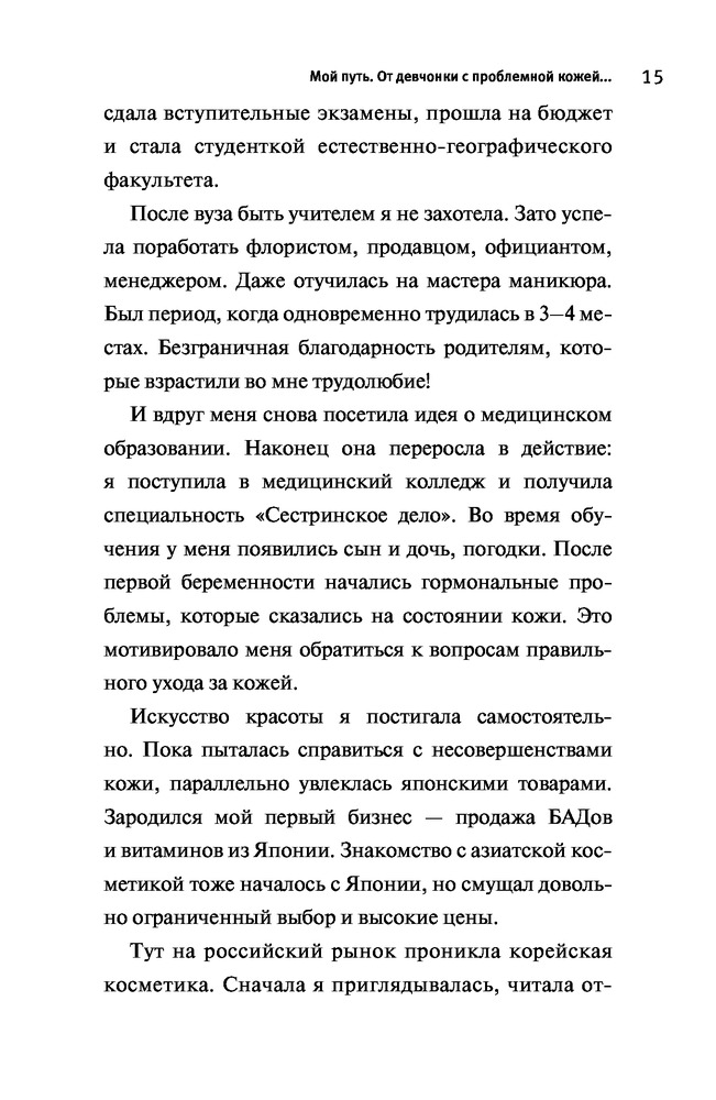 | Косметолог, международный эксперт в корейской косметике и космецевтике, выпускница РХТУ им. Д.И. Менделеева по специальности «Основы технологии косметических средств», победитель в номинации «Косметолог, косметический химик года» премии Business People Award журнала EXPERT_RF+. |