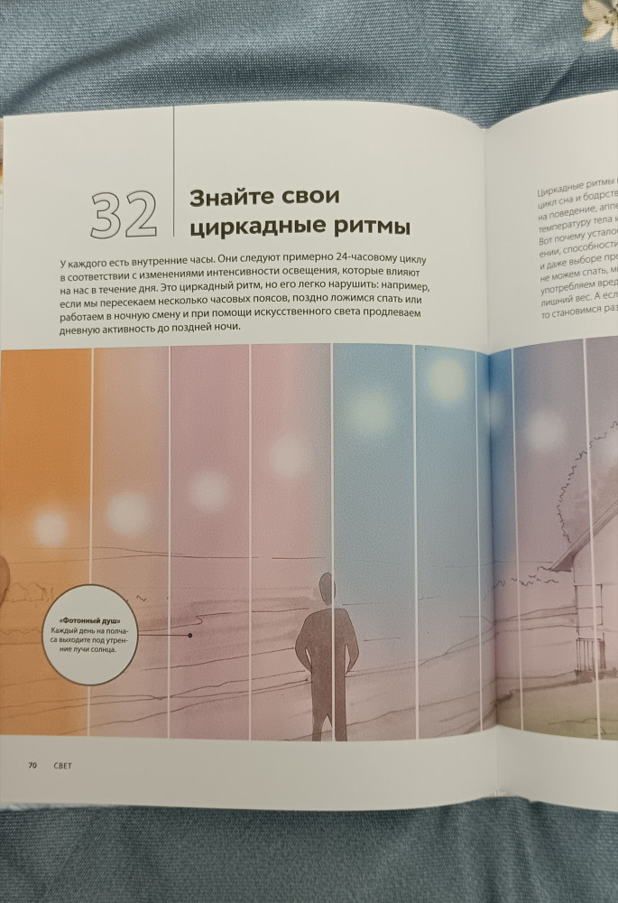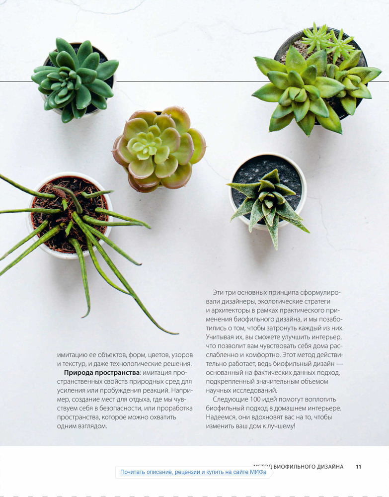 «Естественные узоры, возникающие из-за природных процессов, — биофильные фракталы. Если вы достаточно наблюдательны, то заметите и другие примеры: изгибы реки или трещины в грязи. Фрактальные узоры можно найти в горах, песчаных дюнах, коралловых рифах, ульях, снежинках, цветах, сосновых шишках, ракушках, гальке...».