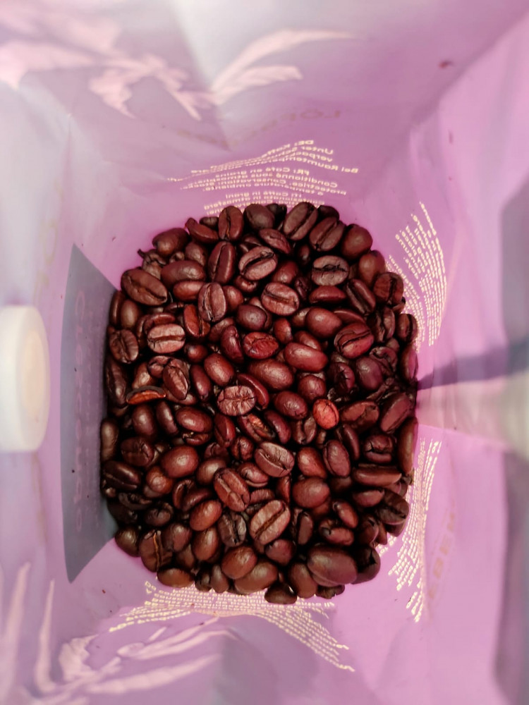 Понравился и со сливками и черный. Варил в керамической турке. И просто заваривал в чашке. Фото искажает цвет. Зерно на самом деле темное, блестящее.