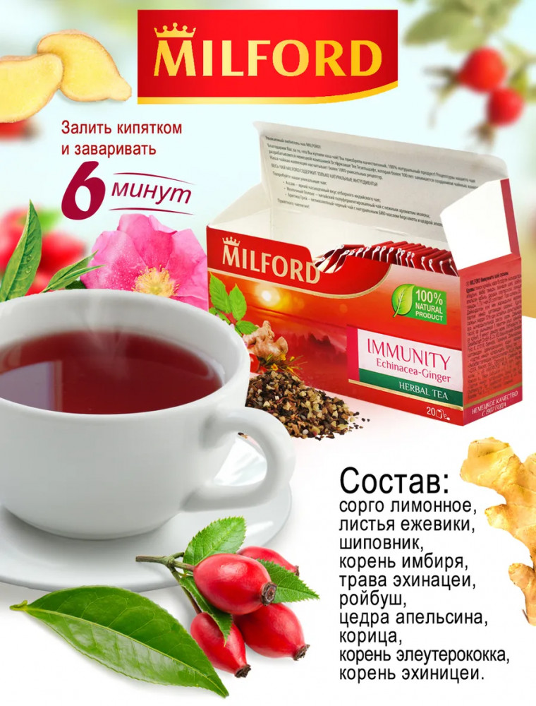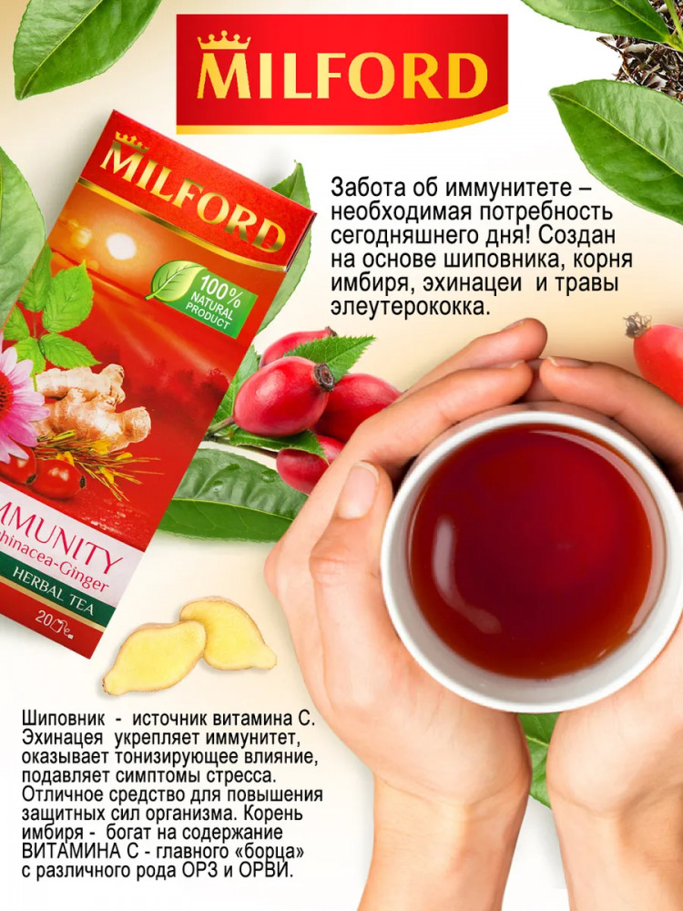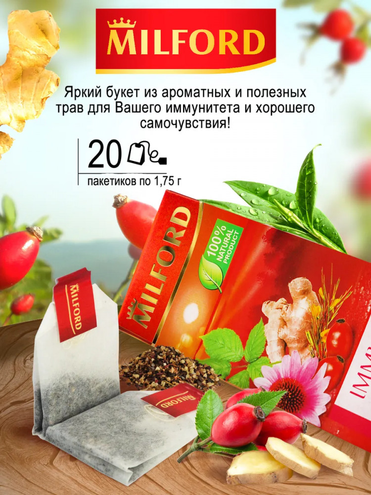 Milford Чай «Immunity»+25 вкус травяной состав поддержка иммунитета