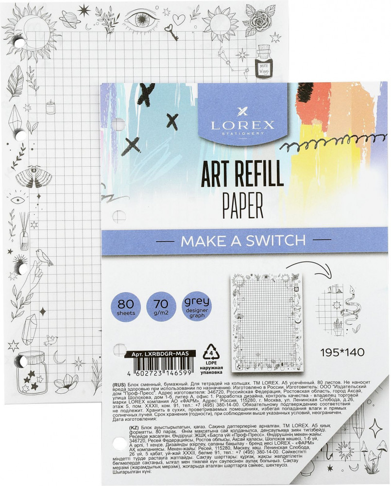 LOREX Сменный блок для тетрадей на кольцахВ данный момент этот товар отсутствует в продаже. Возможно, у нас найдется аналогичный или похожий товар здесь. Сменный блок для тетрадей на кольцах для тех, кто хочет выделяться! Линовка блока — серая точка. На каждый лист набора нанесен дизайнерский принт на поля. Такой рисунок не отвлекает во время письма и придает хорошее настроение. |