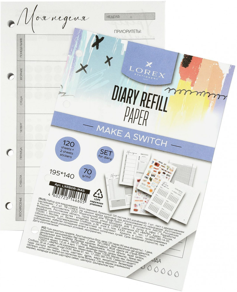 LOREX Сменный блок для ежедневника на кольцахВ данный момент этот товар отсутствует в продаже. Возможно, у нас найдется аналогичный или похожий товар здесь. Набор для ежедневника — настоящая находка для тех, кто любит создавать вещи своими руками. Попробуй сделай свои идеальный ежедневник! В комплект входит 5 видов линованных листов и 2 листа с наклейками. Листы с еженедельником помогут записать самые важные дела на будущие 7 дней. На обратной стороне листов напечатан трекер привычек. Отличный способ отслеживать свой прогресс в здоровых привычках! Листы с ежедневными задачами продолжат план на день более детально. А листы в серую клетку и точку можно использовать для учебы или работы. Теперь твоя тетрадь будет еще универсальнее! |