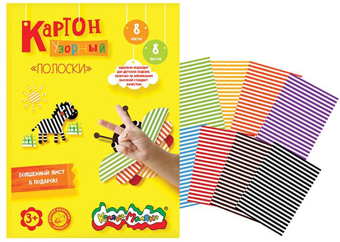 Каляка-Маляка Картон цветной мелованный «Полоски»В данный момент этот товар отсутствует в продаже. Возможно, у нас найдется аналогичный или похожий товар здесь. Картон мелованный узорный Каляка-Маляка прекрасно подходит для поделок и аппликаций, современные стильные узоры и яркий дизайн упаковки обязательно вдохновят ребенка на творчество! Картон с узорами — тренд в детских канцелярских товарах! |