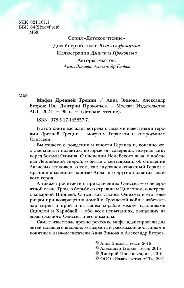 💳 Оплатить за товар можно при получении 🇰🇿 Есть бесплатная доставка по Казахстану 🎁 Копите бонусы с каждой покупки Серия: Детское чтение В этой книге вас ждёт встреча с самыми известными героями Древней Греции — могучим Гераклом и хитроумным Одиссеем. |