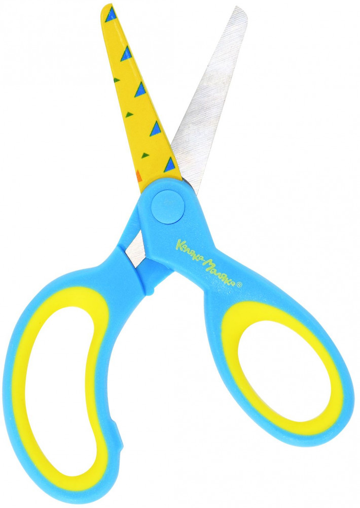 Ножницы с интересным принтом на лезвиях создают позитивный настрой на создание поделок, а эргономичные прорезиненные ручки добавляют комфорта в творческом процессе.