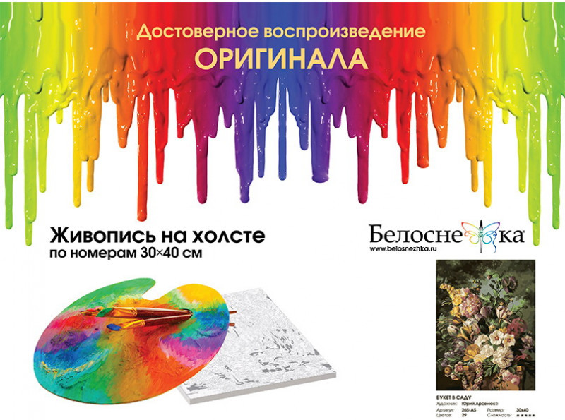 Внимание! Краски могут подсохнуть или быть слишком густыми — это не является браком, в этом случае добавьте небольшое количество воды и хорошо размешайте краску. Рекомендуем раскрашивать картину без длительных перерывов, чтобы краска в баночках не высыхала.