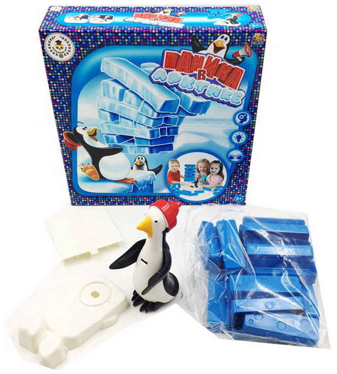 Правила игры: поставить пингвина на ледяную платформу и поместить белую подставку в паз на руки пингвина. Аккуратно сложить башню из всех ледяных блоков, размещая каждый слой под прямым углом к другим. Определить с помощью жребия, кто начнет игру. Во время своего хода вытащить блок из любого места ледяной башни и поместить наверх под прямым углом к предыдущим блокам. Продолжать вытаскивать блоки таким образом, пока башня не упадет. Если во время хода одного из игроков башня разваливается, этот игрок выбывает из игры. Оставшиеся игроки строят башню снова и продолжают играть, пока не останется только один игрок, который и становится победителем.