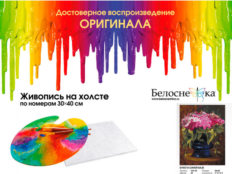Внимание! Краски могут подсохнуть или быть слишком густыми — это не является браком, в этом случае добавьте небольшое количество воды и хорошо размешайте краску. Рекомендуем раскрашивать картину без длительных перерывов, чтобы краска в баночках не высыхала.