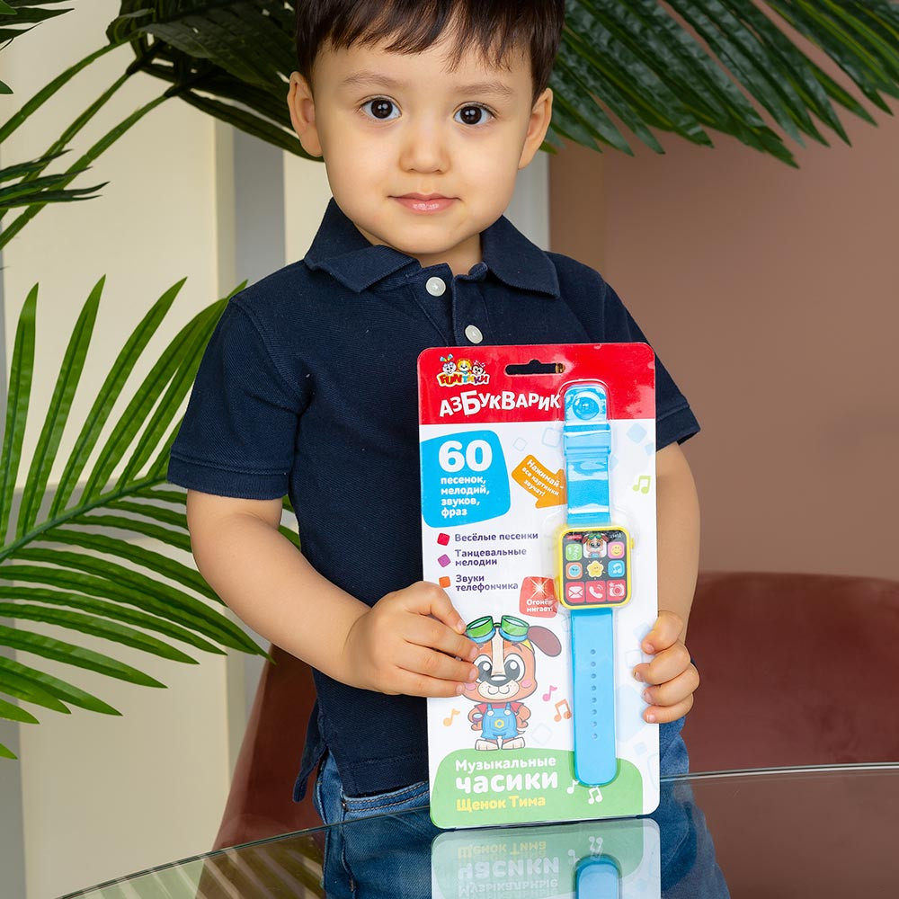 Музыкальные часики «Щенок Тима» отличаются стильным дизайном — они очень похожи на смарт-часы для взрослых. Они пригодятся не только для развлечения, но и для развития слухового восприятия, мелкой моторики, музыкальных способностей.