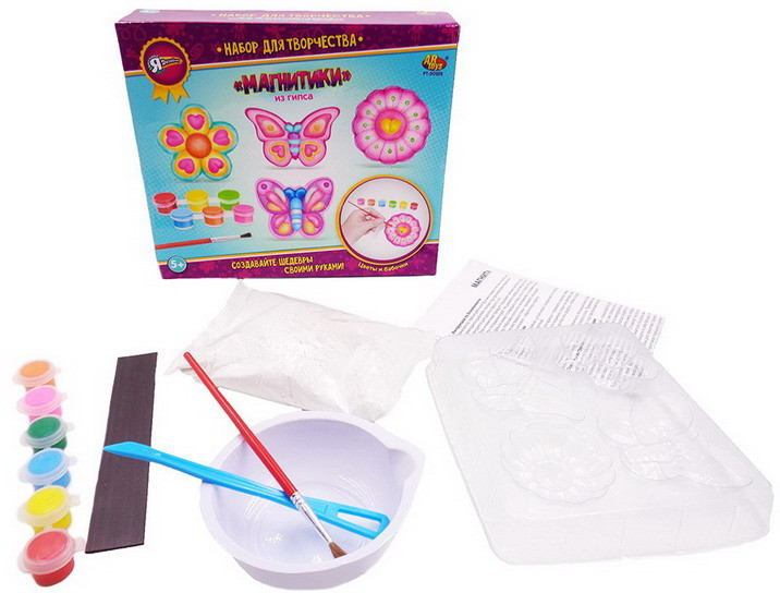 Набор для создания магнитиков «Я дизайнер. Цветы и бабочки». Декоративные магниты являются замечательным подарком, а если такой подарок изготовить своими руками — он будет очень ценным. Маленькие дети с удовольствием будут изготавливать такие декоративные магниты в форме бабочки или цветка.