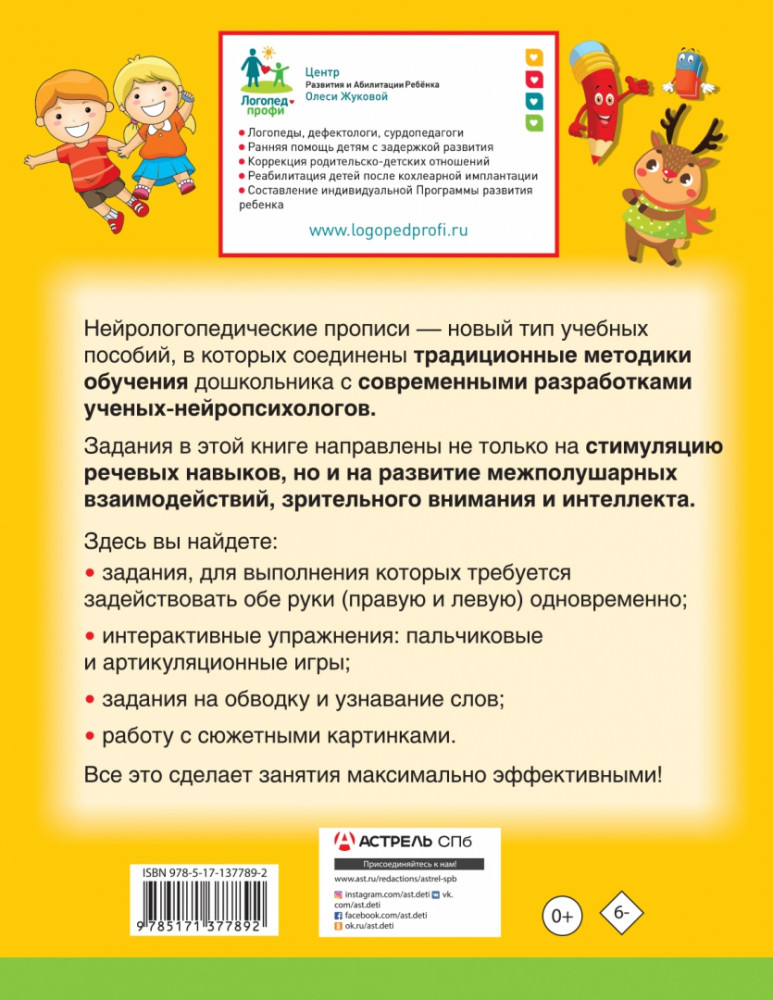 Нейрологопедические прописи. Развиваем речьВ данный момент этот товар отсутствует в продаже. Возможно, у нас найдется аналогичный или похожий товар здесь. Серия: НЕЙРОлогопедические прописи Нейрологопедические прописи — новый тип учебных пособий, в которых соединены традиционные методики обучения и развития дошкольника с современными практическими разработками ведущих российских ученых-нейропсихологов и логопедов. |