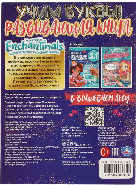 Маленькая любознайка интересно и с пользой проведёт время, занимаясь с этой увлекательной книжкой. Внутри её ждут красочные иллюстрации, яркие наклейки, развивающие задания и персонажи любимого мультсериала — волшебные подружки из Зачарованного леса и их питомцы.