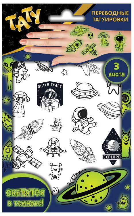 ND Play Наклейки - татуировки светящиеся «Космос»-25% +13