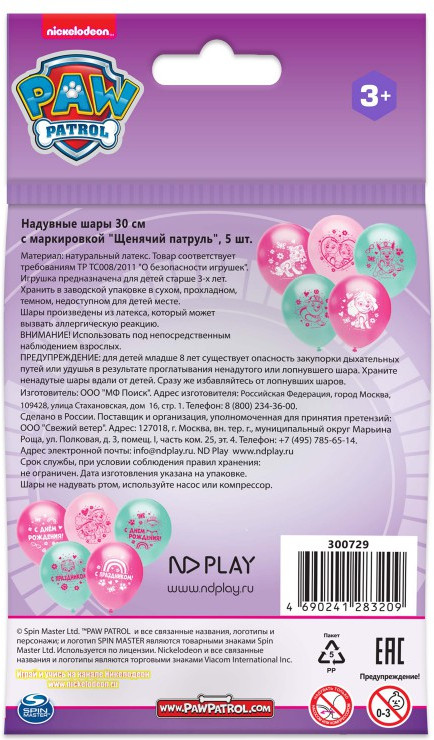 ND Play Шары воздушные «Щенячий патруль»В данный момент этот товар отсутствует в продаже. Возможно, у нас найдется аналогичный или похожий товар здесь. Серия: Щенячий патруль Оформите вечеринку для мальчика или девочки в стиле мультфильма «Щенячий патруль»! Воздушные шарики с изображением любимых героев помогут создать волшебную атмосферу, сделают праздник оригинальным и незабываемым. |