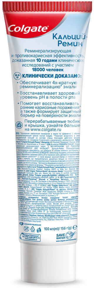 Colgate Зубная паста реминерализующая «Кальций-ремин»-20% +51 низкая абразивность хорошее пенообразование снижает чувствительность отбеливает