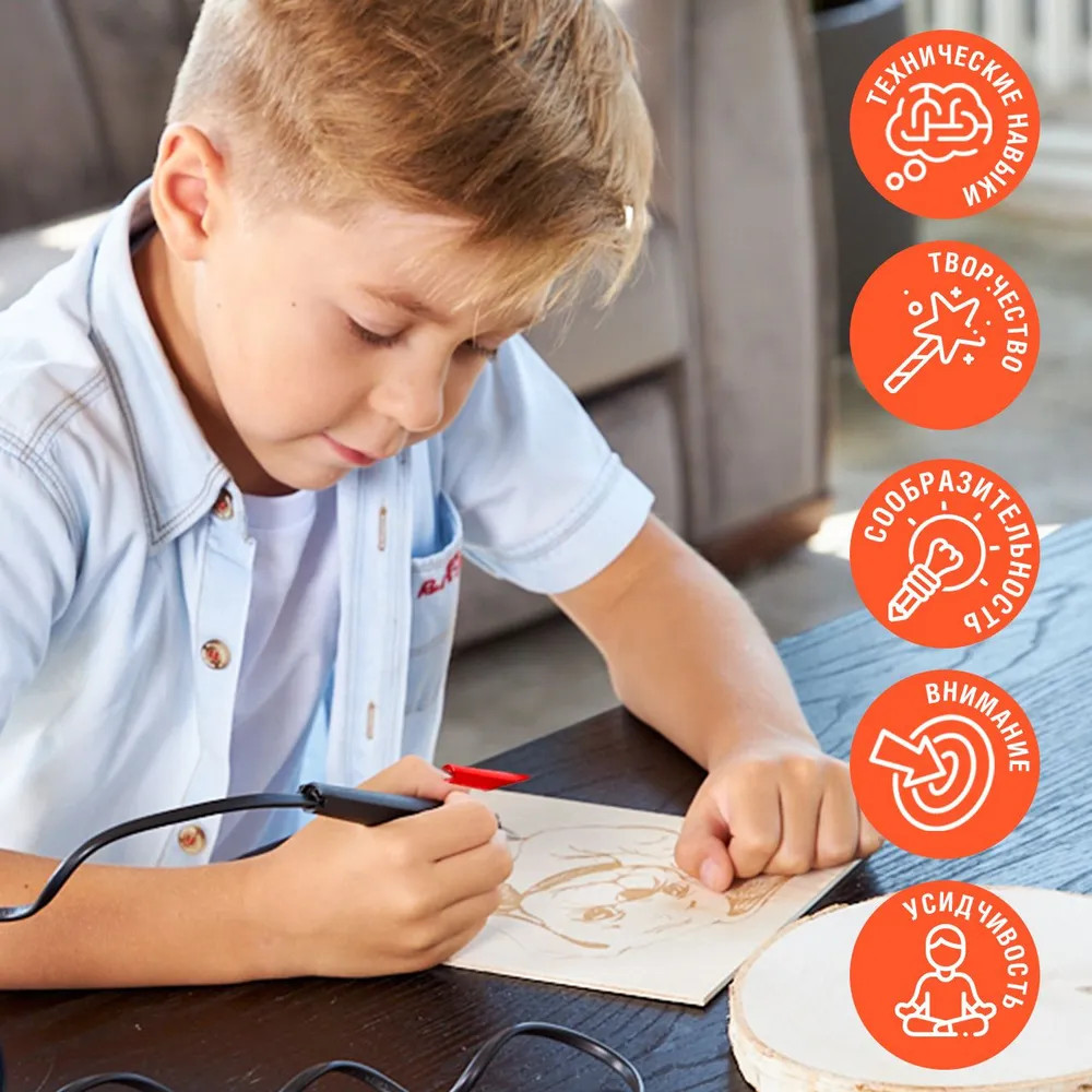 💳 Оплатить за товар можно при получении 🇰🇿 Есть бесплатная доставка по Казахстану от 1 дня 🎁 Копите бонусы с каждой покупки Серия: Выжигание по дереву Выжигание по дереву — один из занимательных видов декоративного искусства. Овладение мастерством выжигания в дальнейшем позволит ребёнку украшать своими руками шкатулки, разделочные доски, другие предметы интерьера. Это полезное и интересное занятие может стать серьёзным увлечением ребёнка, которое даст толчок развитию мелкой моторики, усидчивости и внимательности. |