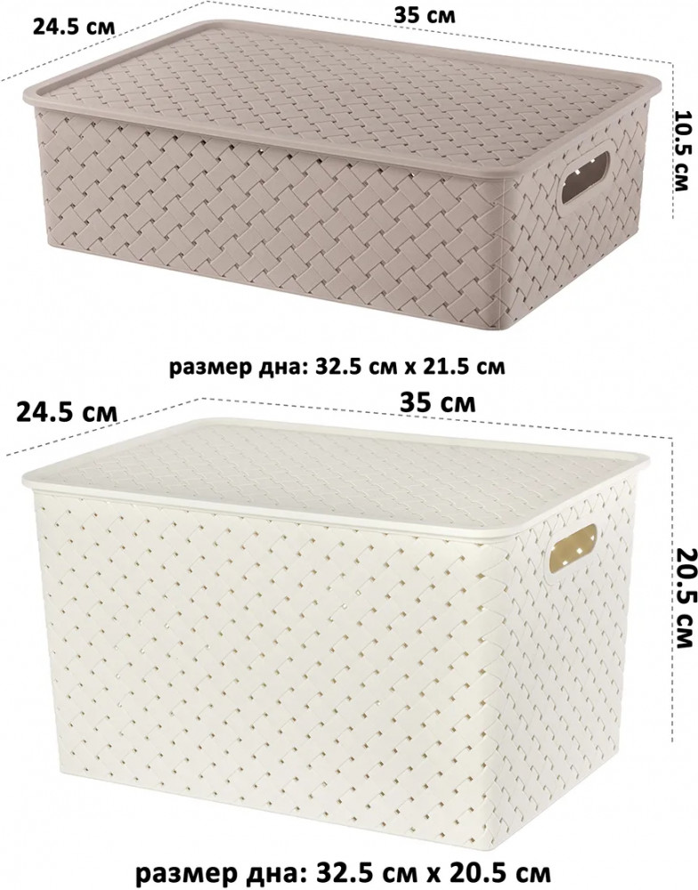 Корзины понравились. Вместительные, удобные. Крышки не очень плотно закрываются, но для меня это было не важно.