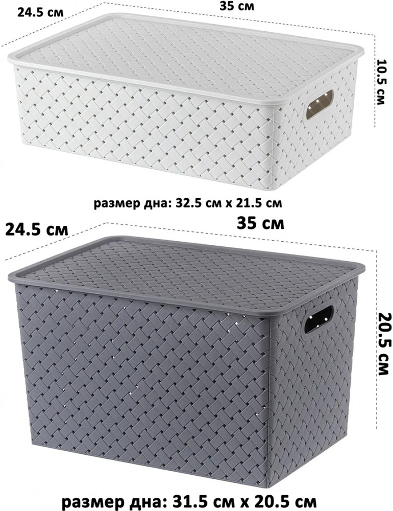 Корзины понравились. Вместительные, удобные. Крышки не очень плотно закрываются, но для меня это было не важно.