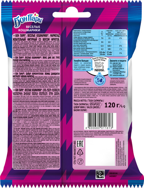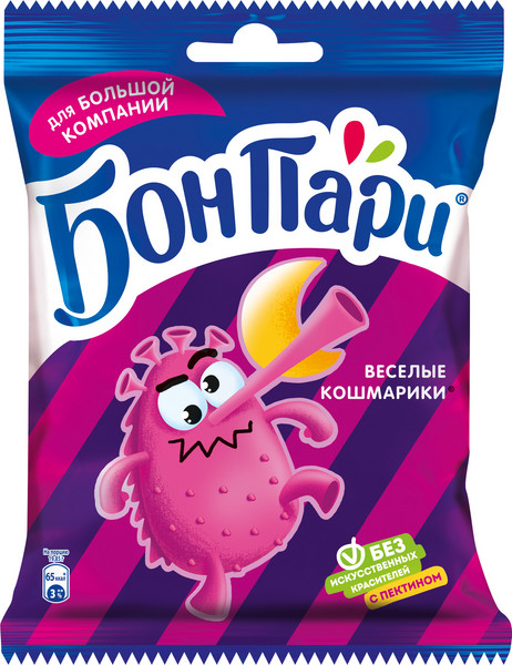Восхитительный жевательный мармелад с пектином, не содержит искусственных красителей. Прошло более 40 лет с момента появления первой конфеты «БонПари», но до сих пор восхитительный вкус продолжает приносить радость в повседневную жизнь!