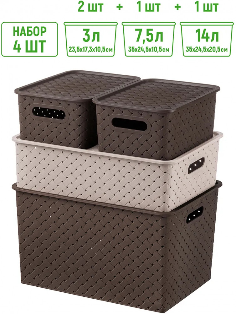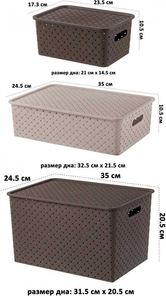 Отличные корзины по очень привлекательной цене. Крышки сидят не плотно, но мне они были не нужны.