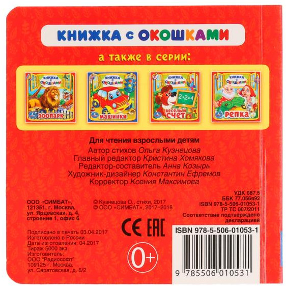 УМка Домашние животные. Книжка с окошкамиВ данный момент этот товар отсутствует в продаже. Возможно, у нас найдется аналогичный или похожий товар здесь. Книжка с окошками «Домашние животные» от компании «Умка» носит развивающий и обучающий характер. Она подходит для детей дошкольного возраста и поможет подготовить их к школе. Страницы книги украшены яркими иллюстрациями, которые в легкой и игровой форме познакомят ребенка с миром животных. |