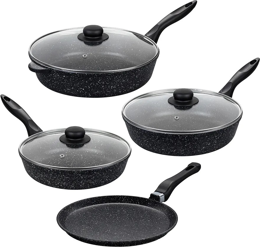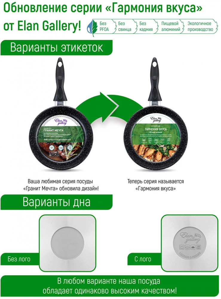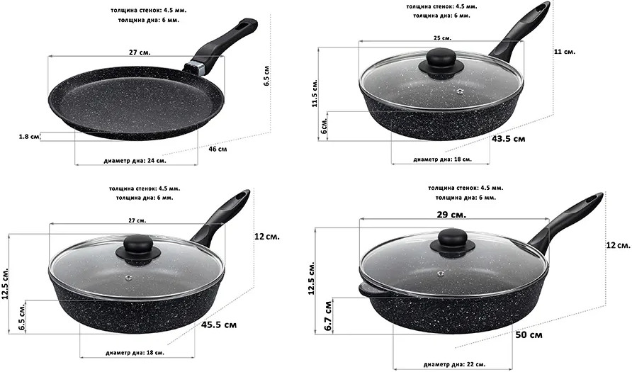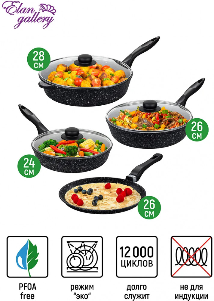 💳 Оплатить за товар можно при получении 🇰🇿 Есть бесплатная доставка по Казахстану от 1 дня 🎁 Копите бонусы с каждой покупки Серия: Гармония вкуса Набор серии «Гармония вкуса» состоит из 7-ми предметов: сковороды глубокие 28 см, 26 см и 24 см с 3-мя крышками и сковорода блинная 26 см. Посуда выполнена из литого алюминия в России и имеет ультрапрочное двухслойное антипригарное покрытие. Главное преимущество покрытия — устойчивость к царапинам и износу. Покрытие безопасно для человека и не содержит PFOA или других вредных веществ. Не нагревайте посуду без продуктов. Дайте посуде остыть, прежде чем помещать ее в воду. Использовать только силиконовые или деревянные приборы. Не мыть абразивными или щелочными моющими средствами. Можно мыть в посудомоечной машине в режиме «Эко». При соблюдении всех рекомендаций посуда с антипригарным покрытием станет удобным помощником на кухне на долгое время! |