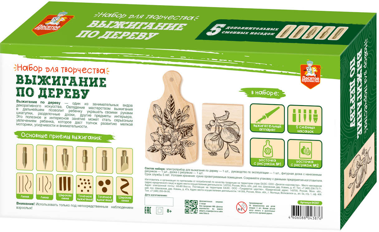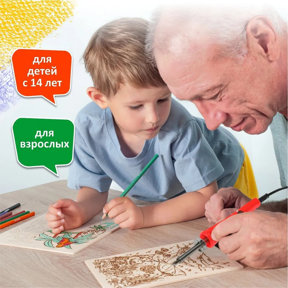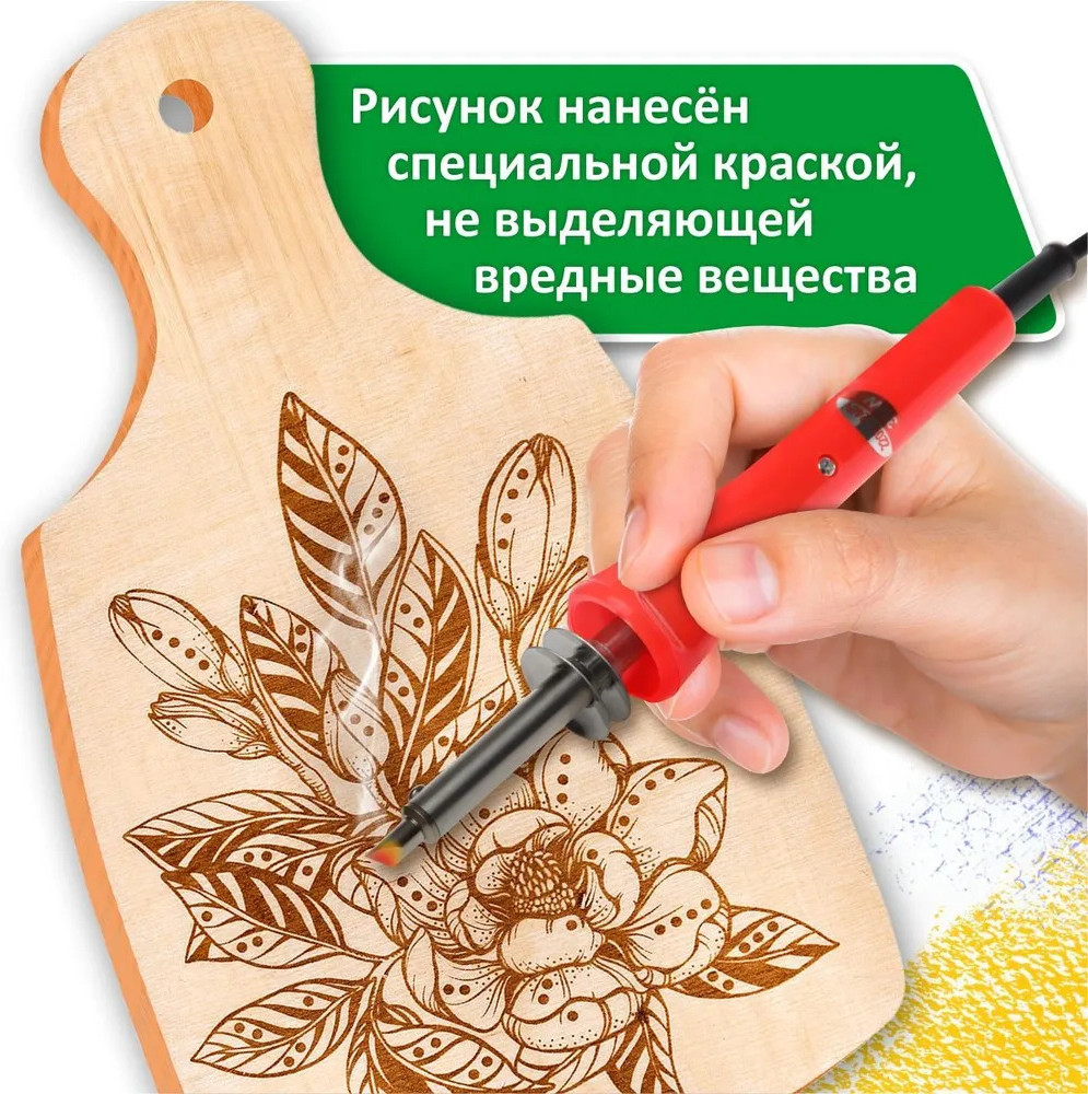 💳 Оплатить за товар можно при получении 🇰🇿 Есть бесплатная доставка по Казахстану от 1 дня 🎁 Копите бонусы с каждой покупки Серия: Выжигание по дереву Выжигание по дереву — один из занимательных видов декоративного искусства. Овладение мастерством выжигания в дальнейшем позволит ребёнку украшать своими руками шкатулки, разделочные доски, другие предметы интерьера. Это полезное и интересное занятие может стать серьёзным увлечением ребёнка, которое даст толчок развитию мелкой моторики, усидчивости и внимательности. |