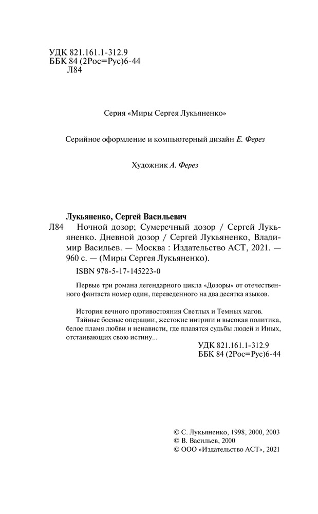 💳 Оплатить за товар можно при получении 🇰🇿 Есть бесплатная доставка по Казахстану от 1 дня 🎁 Копите бонусы с каждой покупки Серия: Миры Сергея Лукьяненко Первые три романа легендарного цикла «Дозоры» от отечественного фантаста номер один, переведенного на два десятка языков. |