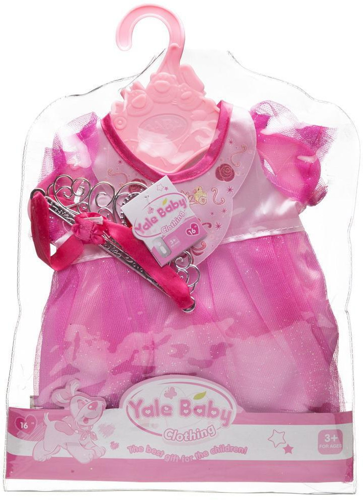 Набор одежды состоит из ярко-розового платья с коротким рукавом и декорированным воротником. Дополнительным аксессуаром набора является корона с камнем, расположенным по центру.
