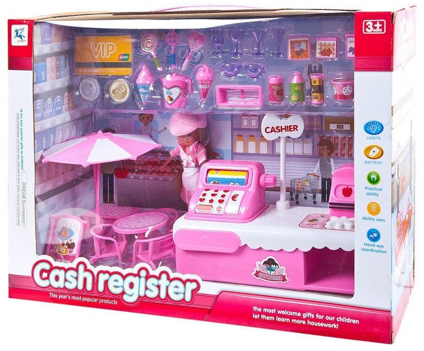 Этот игровой набор будет идеален для сюжетно-ролевой игры в «Магазин мороженого». Такая игра прекрасно развивает детское воображение и фантазию, а ещё способствует совершенствованию речи и коммуникативных навыков в целом.