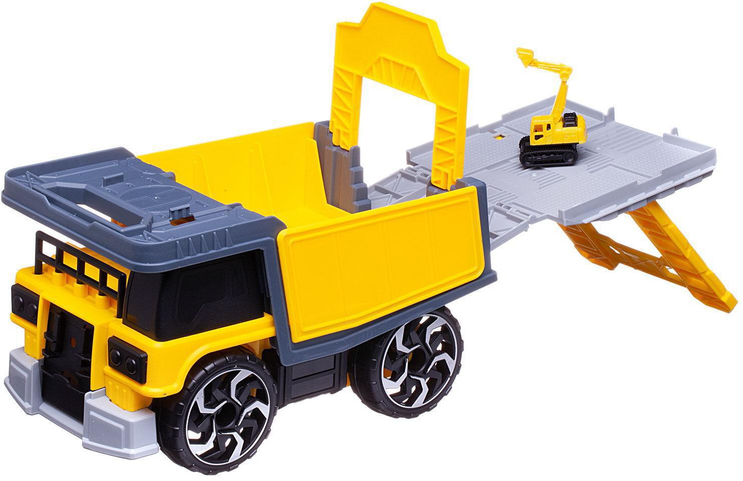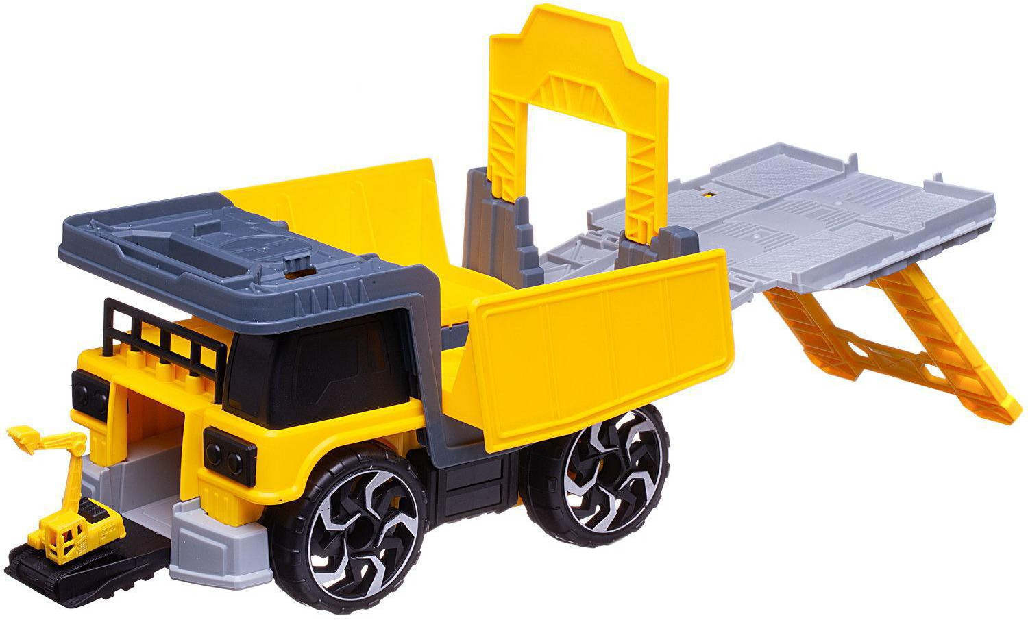 Junfa Toys Набор игровой «Самосвал-трансформер грузовой с машинками»В данный момент этот товар отсутствует в продаже. Возможно, у нас найдется аналогичный или похожий товар здесь. Игры с машинками, самолетами, поездами не только любимое занятие для всех мальчишек, но и важный элемент их взросления. Этот уникальный набор состоит из грузового самосвала-трансформера, внутри которого можно перевозить строительные машинки, входящие в состав набора. Корпус самосвала раскрывается и трансформируется в строительную площадку со съездом. На крыше самосвала есть зона для посадки вертолета. |