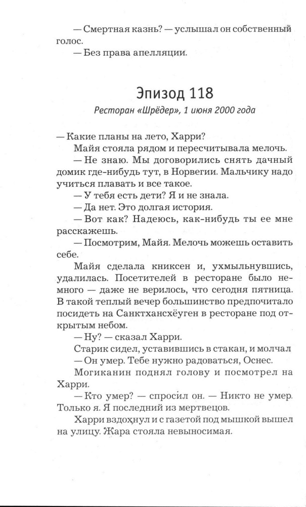 Собрала всего Несбе,теперь читаю. Хорошая книга, гораздо лучше Тараканов, сюжет про месть, блюдо, которое подают холодным. Совет-читайте книги в хронологическом порядке, т.к серия про одного героя Х.Холе и везде идут ссылки на его предыдущие дела и события из его жизни.