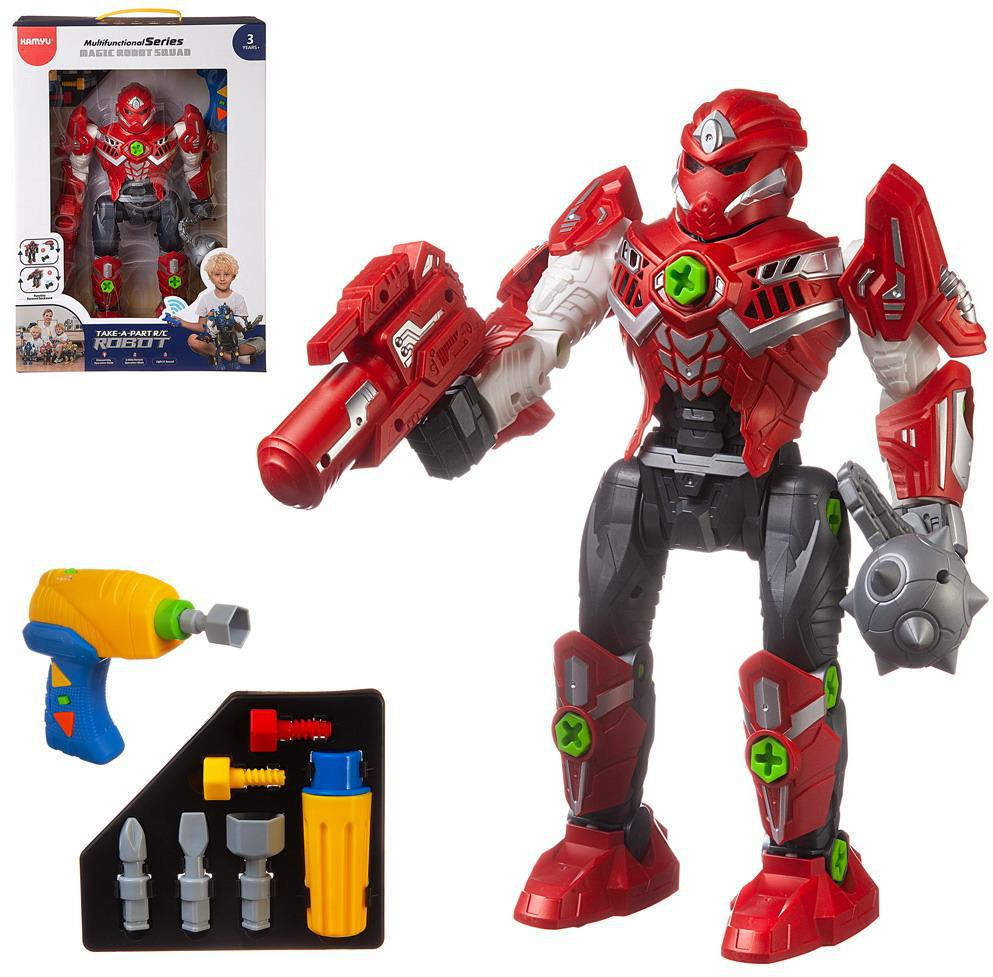 Junfa Toys Робот на радиоуправленииВ данный момент этот товар отсутствует в продаже. Возможно, у нас найдется аналогичный или похожий товар здесь. Этот большой, красный робот сразу привлекает к себе внимание. Его движением можно управлять с помощью пульта дистанционного управления. Этот же пульт можно использовать в качестве электрического шуруповёрта, чтобы разбирать и снова собирать робота. Очаровательный робот обязательно понравится любому ребенку. |