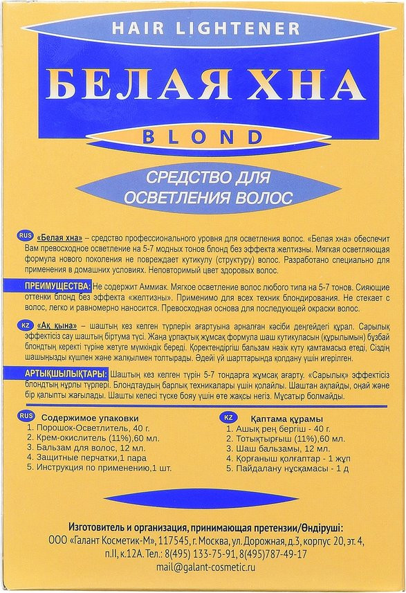 Galant Cosmetic Средство для осветления волос «Хна белая»-20% +39
