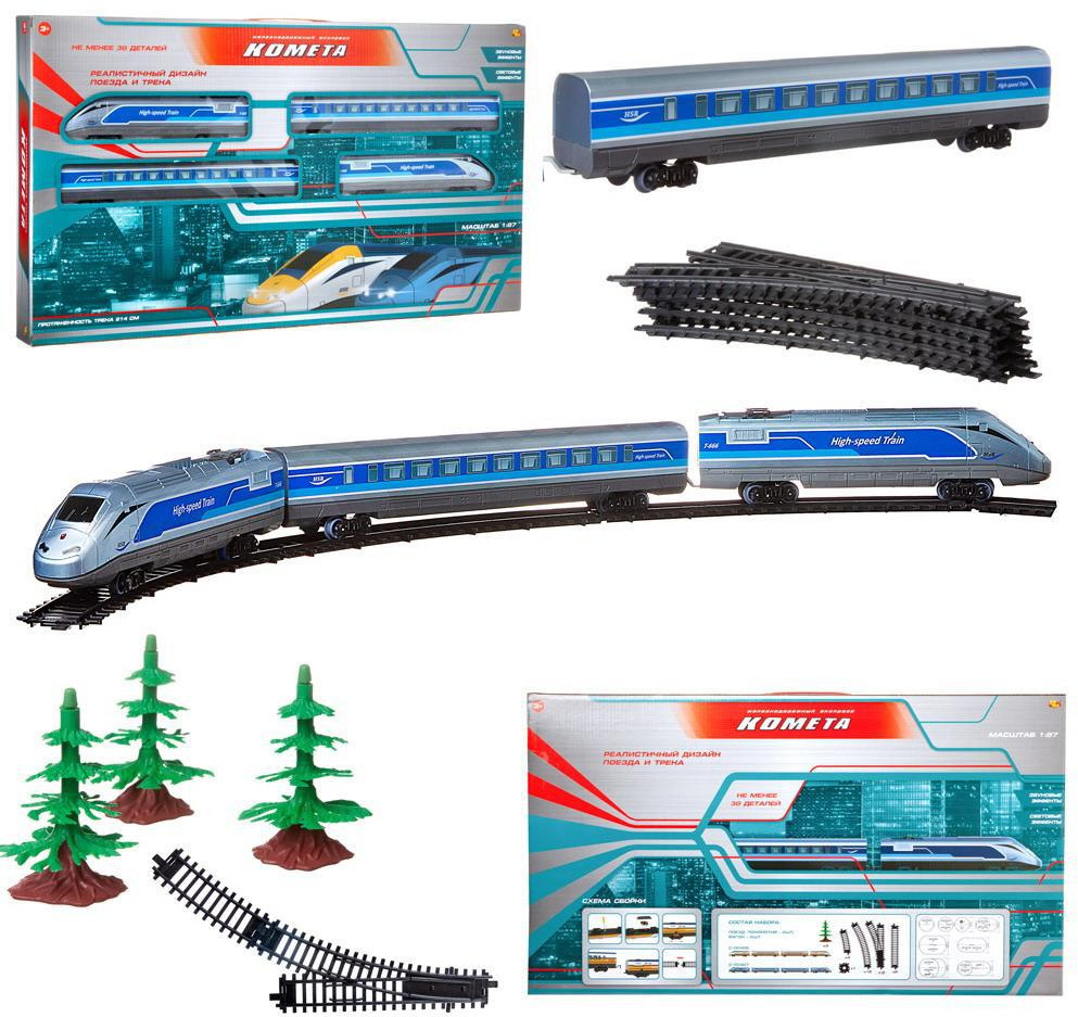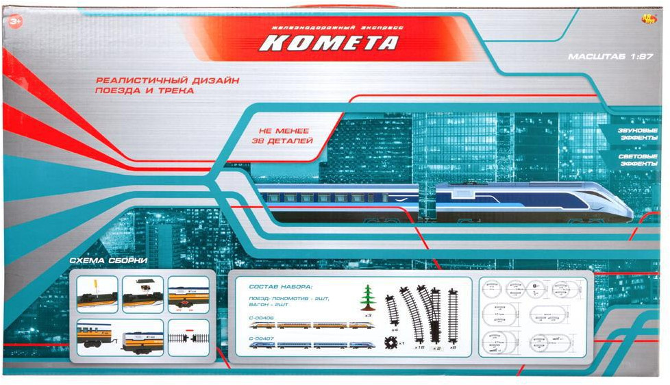 ABtoys Набор игровой «Железнодорожный экспресс»В данный момент этот товар отсутствует в продаже. Возможно, у нас найдется аналогичный или похожий товар здесь. Железная дорога «Комета Железнодорожный экспресс» — это веселые приключения и радостные эмоции, которые ребенок получит вместе с таким замечательным подарком. Локомотив работает от батареек, обладает световыми эффектами и звуком движущегося поезда. Все вагоны, рельсы и дополнительные аксессуары изготовлены из пластика. С такой железнодорожной конструкцией и движущимся по ней вагонам ребенок сможет придумать множество различных игр и получить от этого море удовольствия. Возможны 7 вариантов сборки путей (указаны на упаковке). |