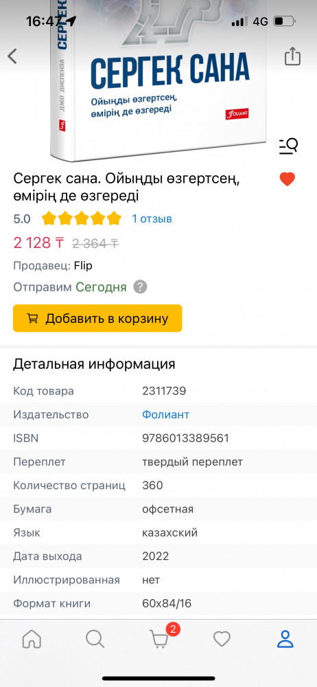 💳 Оплатить за товар можно при получении 🇰🇿 Есть бесплатная доставка по Казахстану от 1 дня 🎁 Копите бонусы с каждой покупки Бұл — өзіне-өзі ие болғысы келетіндерге арналған еңбектердің ішіндегі елді елең еткізген № 1 кітап. Әсілі, өмірдің тартқанына, тағдырдың салғанына көніп жүре берудің еш мәнісі де, қажеттілігі де жоқ, өйткені біз кез келген сәтте өмірімізді өзгерте аламыз. Міне, осы орайда, миды жетілдіру бойынша әлемдік бестселлер кітаптардың авторы, нейрохимия және нейробиология профессоры, доктор Джо Диспенза өмірді өзгертудің ғылыми тәсілін ұсынады. Оның бірегей бағдарламасы төрт апталық мерзімге шақталған. Осы уақыт ішінде бұл бағдарлама қалағаныңызға жетудің жолы ретінде ішкі жан дүниеңізге үңіліп, көкірек көзін ашудың жөн-жосығына үйретеді — сіз тек өміріңізде нақты нені өзгерткіңіз келетінін шешсеңіз болғаны. Ақылды, мазмұнды және алған біліміңізді іс жүзінде қолдануға машықтандыратын материалға толы бұл кітап сізге эмоциялар тұтқынынан азат болып, деніңіз сауығып, бағыңыз ашылып, өміріңізді құтқа толтыруға септеседі. Доктор Диспензаның әдістемесін пайдаланған әрбір жан осыған күш-қайратын сарп еткеніне еш өкінбейді. Д. Диспенза осы еңбегінде көкіректің қалай «жұмыс істейтінін» ұғынықты түсіндіріп, мидың құрылымы туралы ұғымыңызды өзгертеді, көкірек түкпіріне үңіліп, оны компьютер сияқты қайта бағдарлауға үйретеді, тиімді медитация техникаларын ашып көрсеткен. |