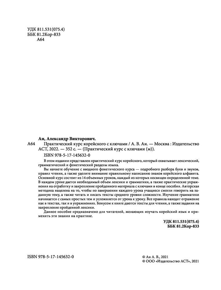| Практический курс корейского с ключами Александр Викторович Ан +124 (бонуса)