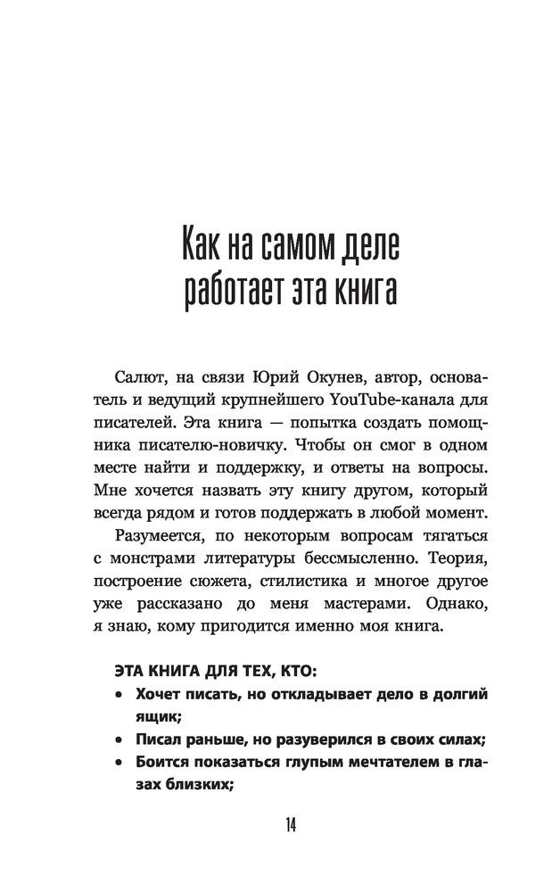 Очень полезная книга для писателей-новичков (именно для писателей-новичков, а не начинающих писателей!). Больше в плане мотивации и понимания "для чего вообще это всё надо", а не с практической точки зрения. Хотя после каждой главы и присутствует практическая минутка, лично мне она мало чем помогла. Некоторое время смотрю автора на Ютубе. Приятный молодой человек 😊