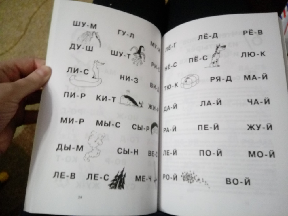 Отличная книга, простенькая, ничего лишнего. Сын буквы все знает, выучили по Букварю О. Жуковой, но читать по нему не хочет, ну ни в какую. Уже и букварь сменила. В интернете наткнулась на эту книгу, решила попробовать. Мне на удивление, ребенок с удовольствием занимается, отлично читает слоги. Пришла к выводу, что для обучения чтению, нужна книга менее яркая, с меньшим количеством картинок, чтобы не отвлекала. За такую цену, это просто отличная книга.