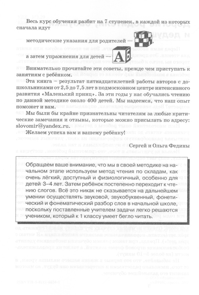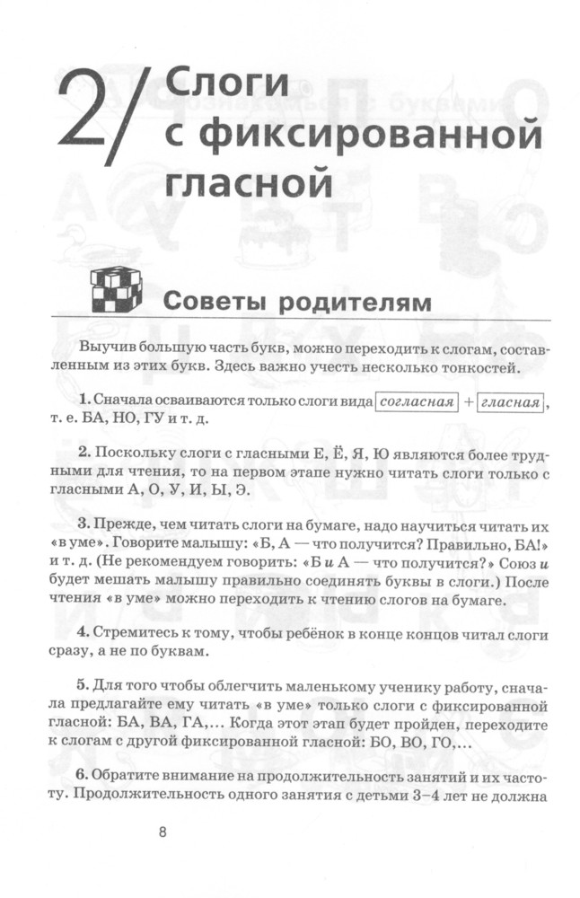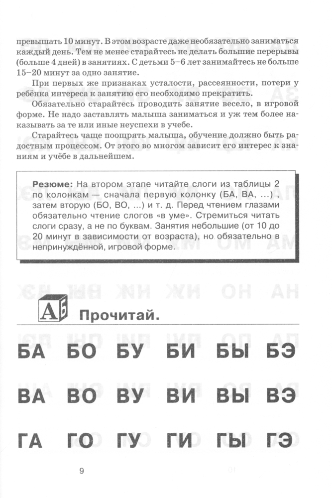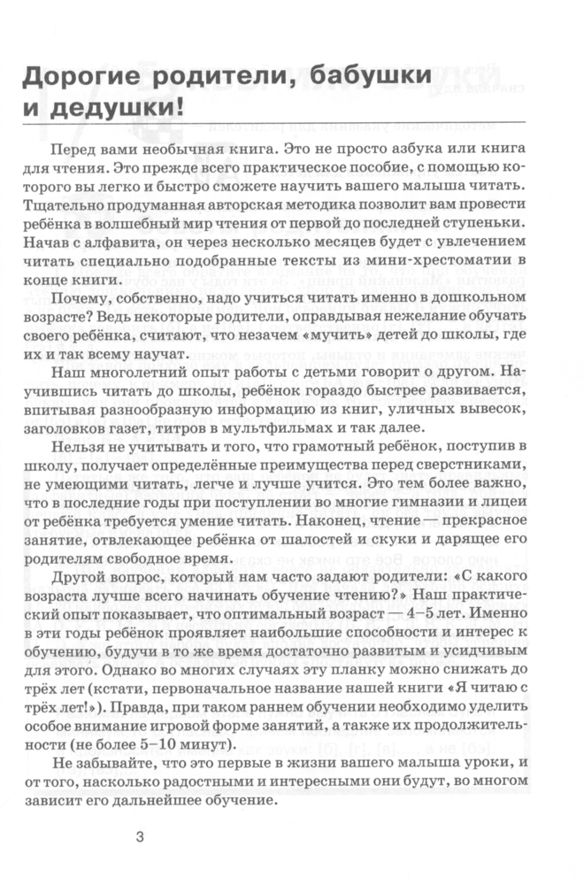Думаю, что данная книга в рекомендациях не нуждается, она уже отлично себя зарекомендовала. Мы купили по совету воспитателя детсада, чтобы заниматься с сыном дома. Ребенку 5 лет. Как раз для тех родителей, кто не знает, как начать учить ребенка читать. Там все просто расписано. Мне понравилась книга.