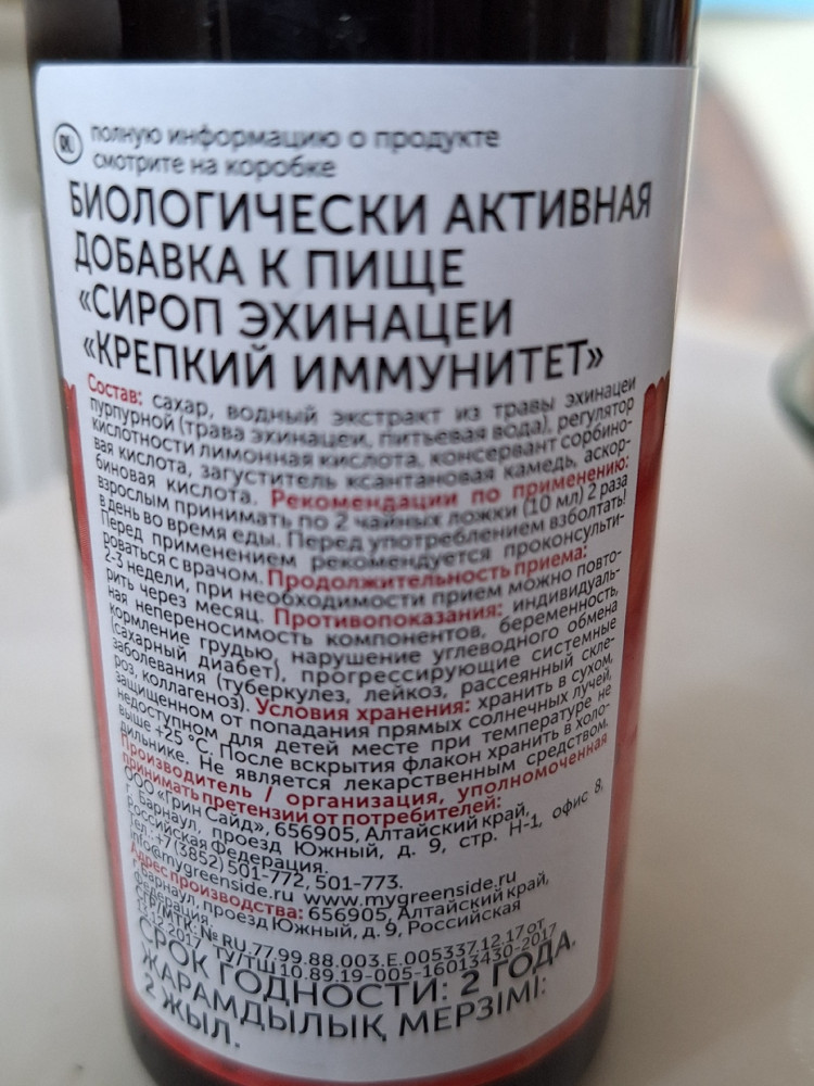 Алтайские травы Сироп эхинацеи+21 вкусный детям нравится укрепляет иммунитет быстро действует