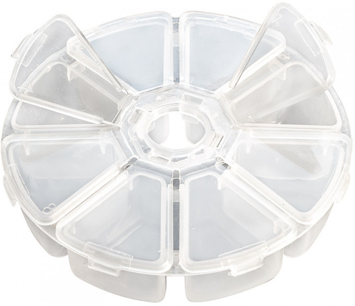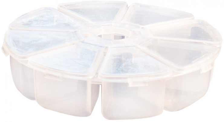 💳 Оплатить за товар можно при получении 🇰🇿 Есть бесплатная доставка по Казахстану от 1 дня 🎁 Копите бонусы с каждой покупки Восьмисекционный органайзер диаметром 10,3 × 2,4 см от торговой марки «Белоснежка» с отдельными крышечками на каждое отделение. Действительно удобная вещь для хранения бисера, небольших декоративных элементов и любых мелких предметов. Практичен в использовании и незаменим в процессе хобби и творчества, помогает содержать все необходимые детали в одном месте. |