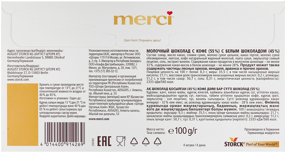 Merci Шоколад молочный «Кофе и сливки»