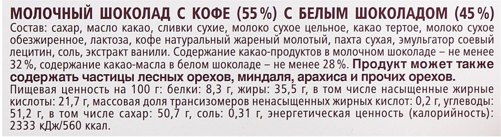 Отзывы «Шоколад молочный «Кофе и сливки»»