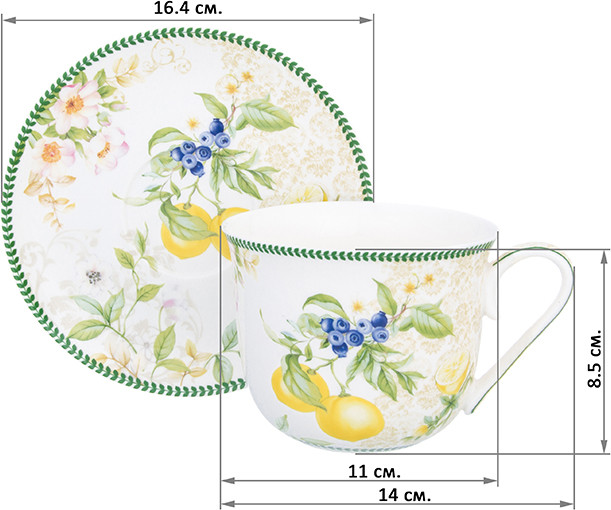 Elan Gallery Чайная пара «Лимоны»В данный момент этот товар отсутствует в продаже. Возможно, у нас найдется аналогичный или похожий товар здесь. Серия: Лимоны Чайная пара из серии «Лимоны» выполнена из высококачественного костяного фарфора нового поколения, благодаря современным технологиям фарфор New Bone China не уступает традиционному костяному фарфору в прозрачности, белизне и прочности, но при этом гораздо экологичнее в производстве. Кружка объемом 500 мл вместительная, изящной формы, с удобной ручкой и ярким рисунком с особенным летним настроением — жизнерадостные лимоны с ярким акцентом и нежными цветами наполнят ваши дни солнцем и яркими красками. Чайная пара упакована в прочную подарочную упаковку и послужит желанным подарком любой хозяйке, так как украсит любой интерьер. В серии «Лимоны» также представлены другие товары для сервировки стола — чайники, кружки, заварочные кружки, тарелки и многое другое. Собирая серию можно наполнить ваш дом прекрасной качественной посудой, создающей удивительное солнечное настроение. |
